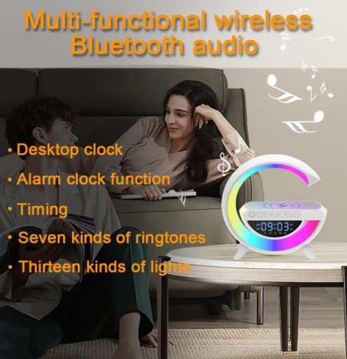 Lampka LED Ładowarka QI Głośnik RGB RADIO ZEGAR
