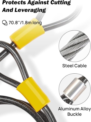 Solidne zapięcie zabezpieczające rower przed kradzieżą złożone z szekli oraz 10mm linki stalowej. Szekla posiada odporny na nawiercenie zamek z automatyczną ochroną przed zanieczyszczeniami. Wykończenie zapięcia zapobiega porysowaniu lakieru na ramie roweru.