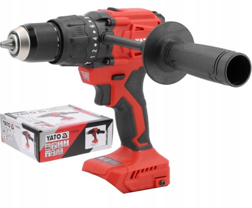 Mocna i jednocześnie lekka wiertarko-wkrętarka bezszczotkowa YATO z funkcją udaru.