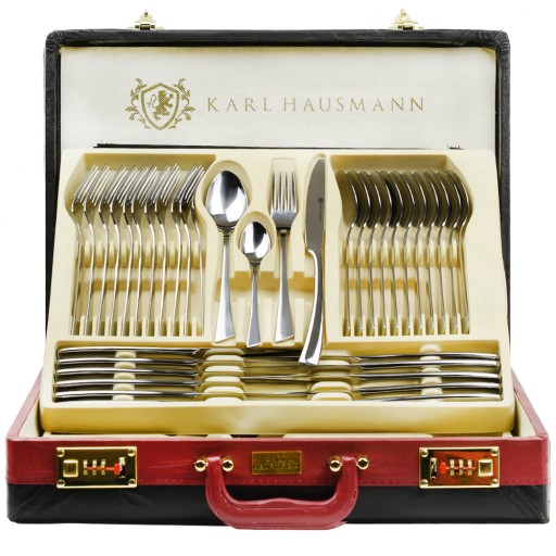 Komplet wysokiej jakości sztućców ze stali nierdzewnej zapakowany w elegancką walizkę.