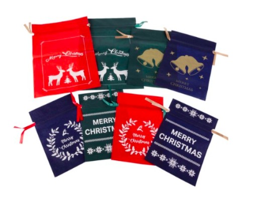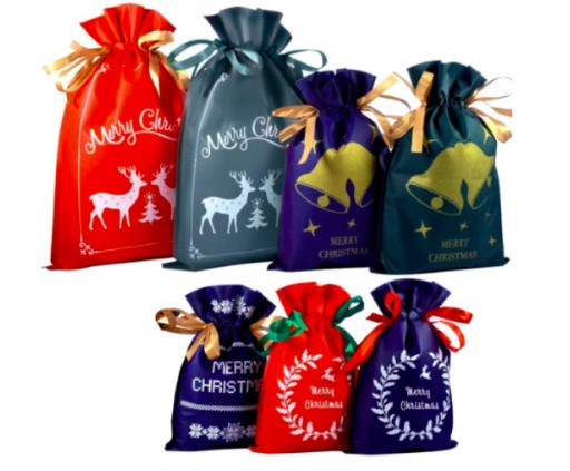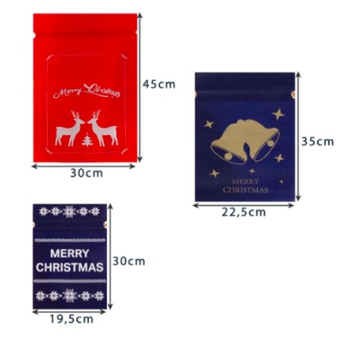 - ŚWIĄTECZNY WZÓR - ta unikalna kolekcja torebek pozwoli Ci zapakować prezenty w prosty i gustowny sposób bez użycia taśmy i nożyczek. Tył worków jest jednokolorowy, natomiast na przodzie znajdują się białe lub złote nadruki: reniferów, dzwonków, gałązek ostrokrzewu, gwiazdek. Każdy woreczek ma także napis „Merry Christmas”.