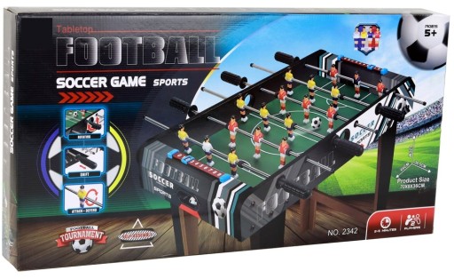 Wprowadź emocje z piłkarskiego boiska do swego domu! Sprawdźcie, kto ustrzeli więcej bramek, a kogo drużyna dotrze do finału i zdobędzie Puchar Świata. Z prezentowaną grą wszystkiego dowiesz się w mig — a wynik będzie zależeć tylko od Ciebie! Piłkarzyki są znaną i lubianą grą już od długich lat, jednak mimo to stale rozbudzają prawdziwe, gorące emocje. Jesteśmy zdania, że każdy fan piłki nożnej powinien mieć taki stół — wiek nie jest istotny, liczą się tylko chęci do wesołej zabawy!