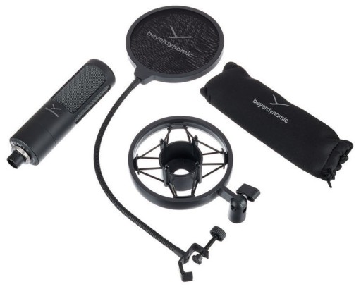- Zawartość opakowania: Uchwyt antywstrząsowy (kosz) x 1, Worek materiałowy x 1, Beyerdynamic M 90 PRO X x 1, Pop filtr x 1