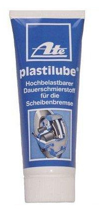 Gwarantuje doskonałe i trwałe smarowanie dzięki lepkiej konsystencji i dużej przyczepności. ATE Plastilube jest optymalnym rozwiązaniem do pojazdów z ABS oraz do wszystkich zacisków hamulcowych włącznie z aluminiowymi, ponieważ nie zawiera metalowych substancji stałych.Syntetyczny środek zagęszczający zawarty w ATE Plastilube umożliwia uzyskanie niezwykle dużej odporności na ściskanie. Dzięki temu warstwa smarująca nie ulega zniszczeniu wskutek nagłych obciążeń udarowych lub ekstremalnych nacisków powierzchniowych. Dzięki temu ATE Plastilube ma również wyjątkowo dobre własności amortyzacyjne.Miejsca nasmarowane środkiem ATE Plastilube są szczególnie dobrze chronione przed korozją