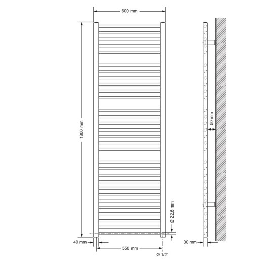 Odpowiedni do grzejników łazienkowych o wysokości do 200 cm i szerokości do 75 cm