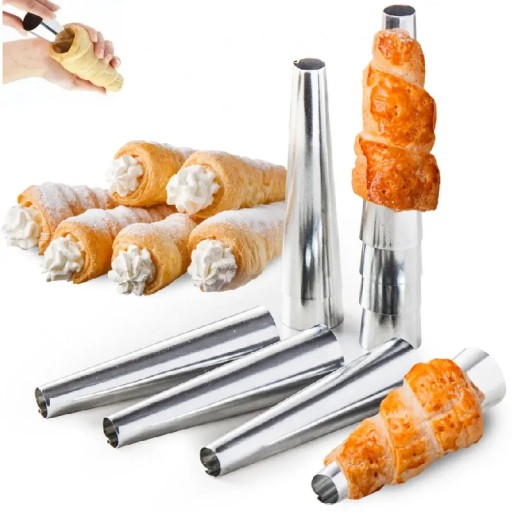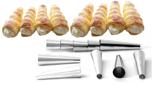 Zestaw foremek do pieczenia rurek nadziewanych kremem. Wykonane z wysokiej jakości stali ocynkowanej, dzięki czemu mogą być wykorzystywane wielokrotnie oraz są łatwe w utrzymaniu w czystości. Sprawdzą się na różne okazje.