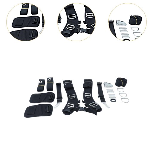 [Regulowane paski]: Uprząż do tylnego mocowania uprzęży do nurkowania z płytą tylną posiada regulowane paski na ramiona i talię wyposażone w klamry z mechanizmem szybkiego zwalniania, ułatwiające zakładanie i zdejmowanie sprzętu.