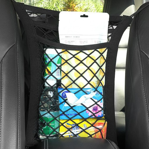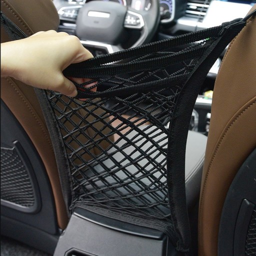 Elastyczna siatka między fotele auta z haczykami - praktyczny i uniwersalny organizer samochodowy 3-warstwowy