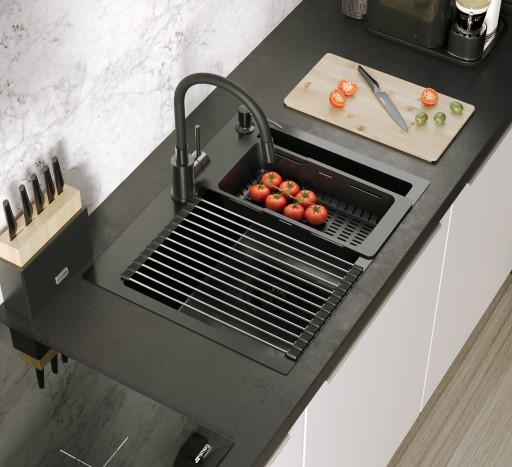 Kolekcja akcesoriów zlewozmywakowych Quadron oferuje praktyczne rozwiązania, podnoszące funkcjonalność i estetykę kuchni. Precyzyjnie zaprojektowane z myślą o wygodzie użytkowników i optymalnym wykorzystaniu przestrzeni, zapewniają wysoką jakość wykonania i wszechstronne zastosowania. Koszyki do ociekania ułatwiają codzienne prace, zastępując lub dodając powierzchnię do odkładania, a otwory odprowadzają wodę do komory. Regulacja pozwala na dopasowanie koszyka do większości zlewów.