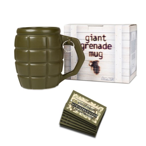 Gigantyczny Kubek Granat to świetny prezent dla wszystkich wystrzałowych ludzi albo tych, którzy trzymają władzę: taty, chłopaka czy dziadka. To pomysłowy prezent dla osób, które piją duże ilości ciepłych napojów i cenią sobie oryginalność. Sprawdzi się jako dowcipny prezent dla szefa (chodząc z granatem po biurze na pewno zyska podwójny szacunek), nauczyciela czy znajomego wojskowego, który lubi swoją pracę. Spodoba się także wszystkim fanom tematyki wojennej lub gier militarnych.