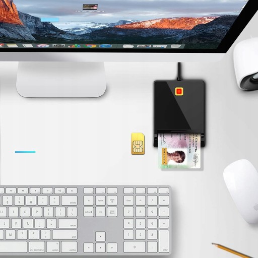 Бесконтактный считыватель электронных удостоверений личности, совместимый с SIM-картами и удостоверениями личности.