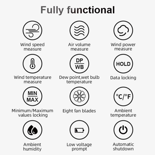 1. Wiele pomiarów: To urządzenie obsuguje prędkość wiatru, natężenie wiatru, się wiatru i pomiar temperatury, pomiar punktu rosy i temperatury mokrego termometru, pomiar temperatury i wilgotności otoczenia.
