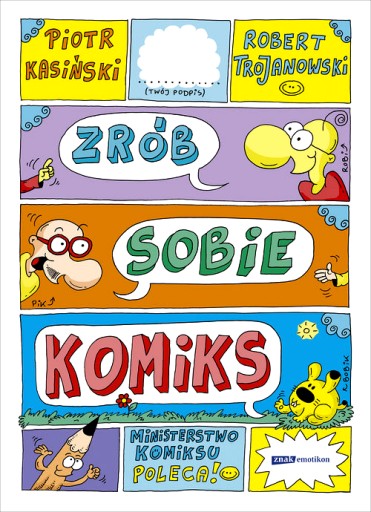(dymek – Pik) Hej to ja Pik! A to Robi, jesteś tam? Pochodzimy z tajnej organizacji –Ministerstwa Komiksu! Nauczymy Cię jak w łatwy sposób narysować swój komiks! (dymek – Robi) No pewnie! Kreska po kresce, dymek po dymku! W końcu władamy ołówkami jak nie byle kto! (dymek – Pik) Wiedziałem, że mogę na Ciebie liczyć! Na początku pokażemy Ci jak stworzyć bohatera komiksu, jak dopisać mu emocje – co ma wymalowane na twarzy, co mu chodzi po głowie, a może i burczy w brzuchu? Ale to Ty zrobisz sobie komiks! Swój własny, niepowtarzalny! (dymek – Robi) Brawo! A dla bardziej zaawansowanych też mamy parę pików w rękawie! Prawda Pik? (dymek – Pik) No pewnie! Pochowałem mnóstwo komiksowych sztuczek! A robi się to tak…