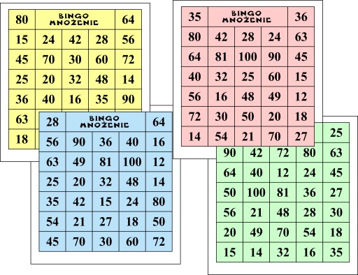 Przykład: Należy wydrukować pojedyncze karteczki z działaniami (4 komplety). Klasa jest dzielona na 4 zespoły każdy zespół otrzymuje matę i komplet karteczek. Na tablicy zapisuje się np 10 wyników - zadaniem zespołu jest odszukanie wyniku na planszy, odpowiadającego temu wynikowi działania na karteczce i położenie jej na wyniku. Wygrywa zespół, który wykona zadanie jako pierwszy i oczywiście nie popełni błędu. Innym wariantem jest podanie konkretnych działań - zadanie jest wykonywane na tej samej zasadzie.