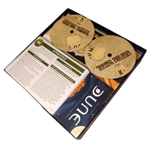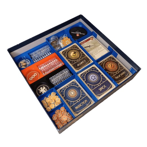 - Mieści karty z dodatków – Ecaz&Moritani; Choam&Richese; Ixians&Tleilaxu