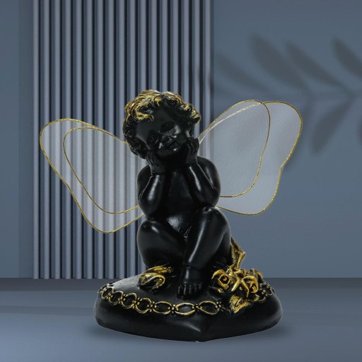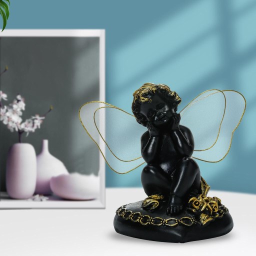 Żywica Anioł Posąg Wróżka Malowany Salon Sypialnia Ozdoby Rzeźba Aniołki Siedzą Czarny