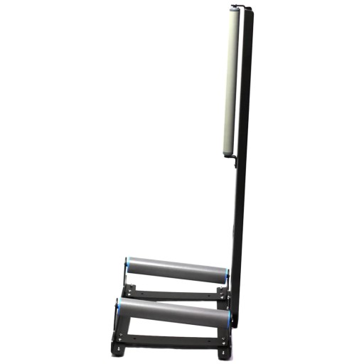 Dolne rolki o długości 300 mm oraz górna o długości 400 mm (łączna długość pałąka 900 mm) dopasują się do felg w rozmiarze od 14” do 22”. Wysokiej jakości gumowe nóżki utrzymają stojak w jednej pozycji podczas całej pracy. Dzięki specjalnym, tylnym zagięciom pałąk jest bardzo stabilny nawet przy masywnych kołach.