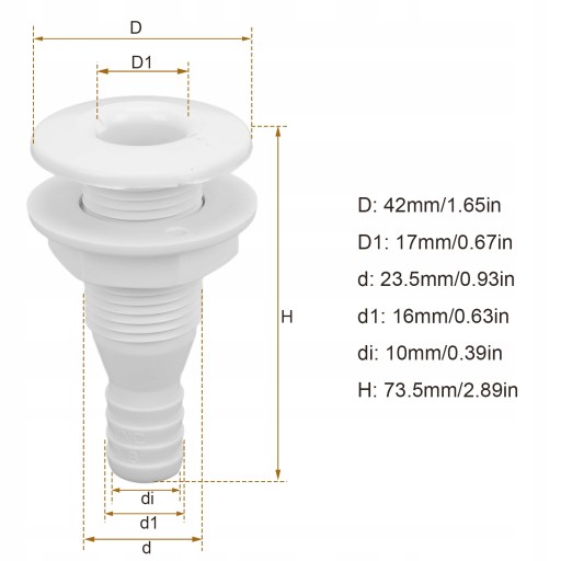 Złącze węża 5/8 cala przez kadłub, proste złącze węża odpornego na uderzenia ABS, akcesoria do łodzi morskich