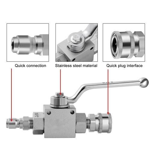 4. ŁATWE STEROWANIE: Konstrukcja zaworu kulowego szybkozłączy myjki ciśnieniowej umożliwia elastyczną kontrolę przepływu wody, wygodną regulację i kontrolę siły czyszczenia