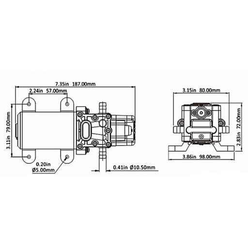 1. Samozasysanie i rotacja na sucho: Membranowa pompa ciśnieniowa ma funkcję samozasysania. Może wysychać przez krótki czas (nie dłużej niż 30 minut).