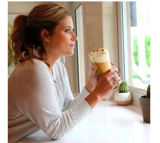 ✅ Dzięki odpowiedniemu kształtowi w szklance do latte uzyskamy idealne właściwości tego naparu.