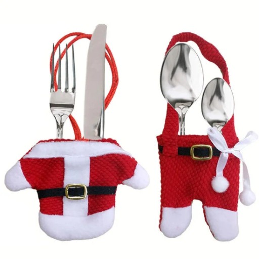 ✅ Zestaw świątecznych etui na sztućce w kształcie ubranka Świętego Mikołaja.