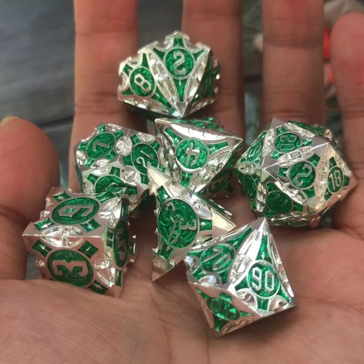 Zestaw 7 metalowych kości idealnych do każdego systemu i dla każdego gracza.