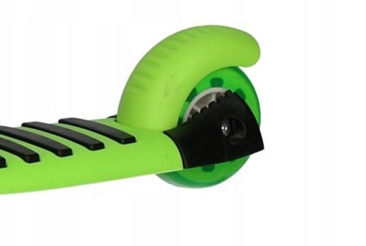 Hulajnoga posiada KAUCZYKOWE ŚWIECĄCE KOŁA LED. Koła świecą podczas jazdy (w wyniku tarcia, nie wymagają baterii).