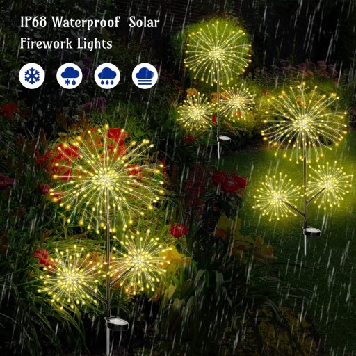 Słoneczne światło fajerwerków ma dwa tryby świecenia. Gdy przełącznik jest ustawiony na stronę ON, jest to tryb migania, przełącznik znajduje się w stanie OFF w środkowej pozycji, a pozycja OFF to tryb stałego światła. To kreatywny prezent dla przyjaciół lub sąsiadów na Boże Narodzenie, Halloween i Święto Dziękczynienia. To zewnętrzne oświetlenie dekoracyjne oświetli tarasy, klomby, ogrody, podwórka, ogrodzenia, chodniki i ścieżki itp.