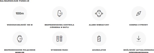 -Bezprzewodowe połączenie z butlą funkcja opcjonalna (do 3 różnych butli dzięki czujnikowi Suunto Tank POD)