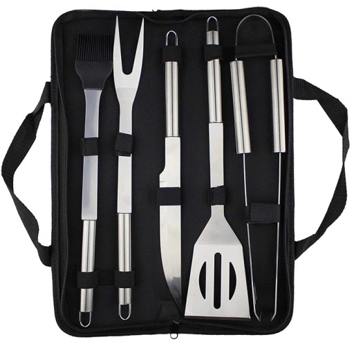 - PRAKTYCZNE ETUI – w zestawie znajduje się bardzo przydatne etui, w którym każdy z akcesoriów do grilla posiada swoje miejsce. Ułatwia to znacznie utrzymanie porządku, ponadto sprawia, że akcesoria do grilla nie gubią się i zawsze są pod ręką. Praktyczne etui posiada rączkę do przenoszenia, więc całość łatwo zabrać ze sobą w miejsce grillowania.