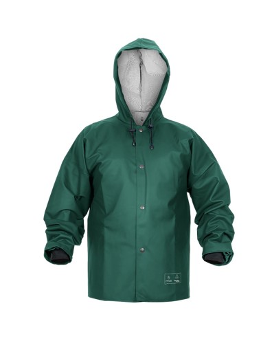 Ubranie złożone z kurtki z kapturem zapinanej na napy oraz spodni ogrodniczek z regulowanymi szelkami z elastyczną, szeroką gumą z tyłu. Model produkowany z wodoochronnej tkaniny Plavitex, przeznaczony do użytku w niesprzyjających warunkach pogodowych. Zapewnia skuteczną ochronę przed wiatrem i deszczem. Wodoochronna powłoka zapobiega przenikaniu wilgoci. Technika obustronnego zgrzewania zwiększa wytrzymałość szwów. Produkt spełnia standardy europejskich norm: EN ISO 13688 i EN 343.