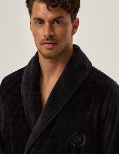 ХАЛАТ МУЖСКОЙ ШАЛЬ ЧЕРНЫЙ мягкий HENDERSON XL