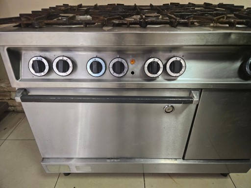 mamy do sprzedania kuchnię gazową 6-palnikową z piekarnikiem elektrycznym marki Senking. Urządzenie było używane, posiada normalne ślady użytkowania. Pod względem technicznym kuchnia jest sprawna.