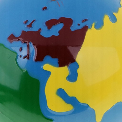 Kolory kontynentów odpowiadają Montessori półkul (świata).