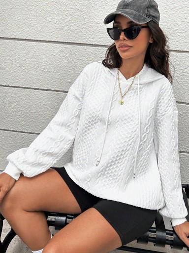 СВОБОДНАЯ ТОЛСТОВКА ДЛЯ МАТЕРИАЛОВ, БЕЛАЯ С КАПЮШОНОМ, БРИТАНСКАЯ ТЕКСТУРА SHEIN 40/42