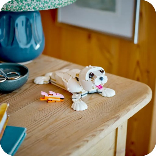 Dzięki zestawowi LEGO Creator 3 w 1 dzieci mogą bawić się trzema różnymi modelami. Mogą zbudować króliczka, a potem zmienić go w piękną papugę kakadu jedzącą ziarenka lub uroczą białą fokę z rybnym przysmakiem.