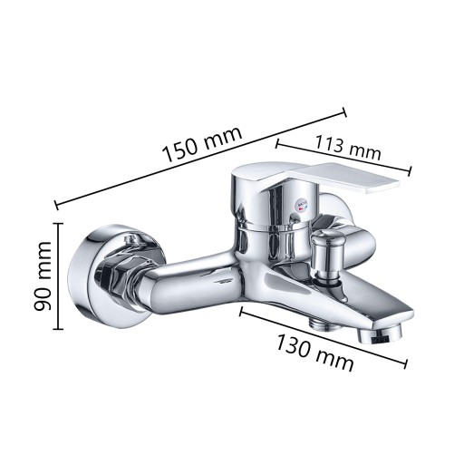 - Regulowany rozstaw – rozstaw montażowy można ustawić tak, aby bateria pasowała do każdych otworów w ścianie.