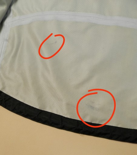 Stan bardzo dobry, drobne kosmetyczne wady jak delikatnie sprany kolor w około czterech - pięciu miejscach na rękawie, dwa trzy ślady na membranie i odklejona taśma wewnątrz na jednym ze szwów, reszta kurtki jest w porządku i cała kurtka nadal prezentuje się dobrze.