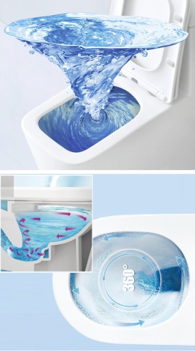 ➡️Deza to komapkt wc z systemem TORNADO, czyli innowacyjną technologią spłukiwania wirowego, która korzysta z silnego strumienia wody. Niezależne testy wykazały, że ta nowa metoda spłukiwania doskonale czyści wewnętrzną powierzchnię miski toaletowej, zużywając jednocześnie zaledwie 3 lub 6 litra wody.
