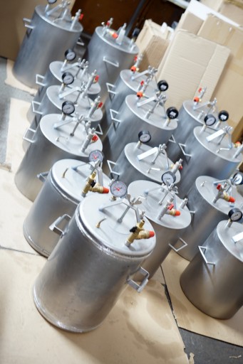 Autoklaw dostepny od razu,jest na stanie,sa jeszcze wieksze 55L-(78 puszek 300g) i 125L-(200 puszek 300g) wersja ze sterowaniem elektrycznym.