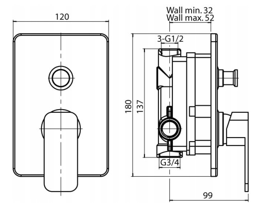 Minimalna głębokość w ścianie niezbędna do zabudowy baterii: 7,5 cm