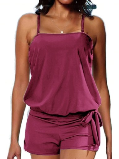 Wygodny do noszenia dwuczęściowy strój kąpielowy w stylu camisole z poduszkami w kolorze jednolitym z otwartym tyłem - zapewnia idealną linię ciała i nogi