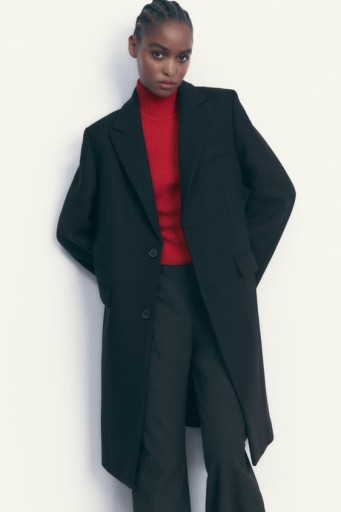 ZARA PŁASZCZ Z TKANINY Z DOMIESZKĄ WEŁNY O MĘSKIM KROJU XS