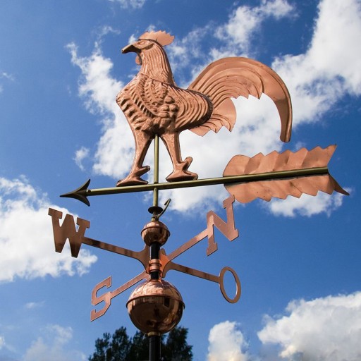 Bardzo ciekawa ozdoba ogrodu i wzbudza zainteresowanie wszystkich którzy go widzą. Kogut jest nie tylko znakomitą ozdobą ale również posiada znaczenie symboliczne Został ręcznie wykonany z miedzi Wskazania kierunków świata wykonane z mosiądzu Nadaje sie zarówno do ogrodu, na taras czy szczyt domu Dzieki specjalnej stopie można go bezproblemowo zamontować praktycznie na każdym dachu.
