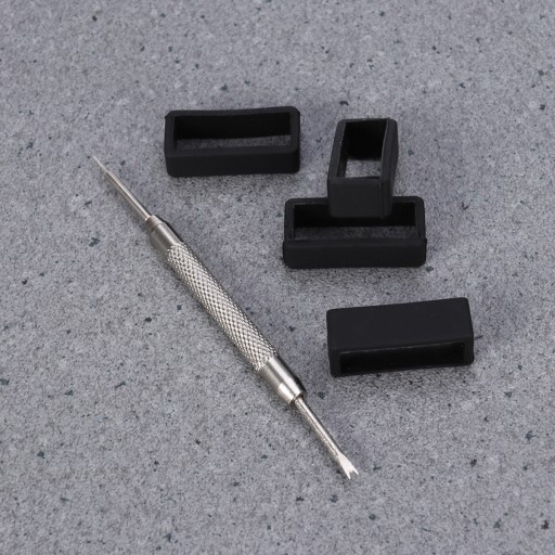 ✅Ten zestaw zawiera 4 sztuki czarnych gumowych wymiennych szlufek do paska zegarka i narzędzie do naprawy. Wykonane z wytrzymałego materiału z gumy silikonowej