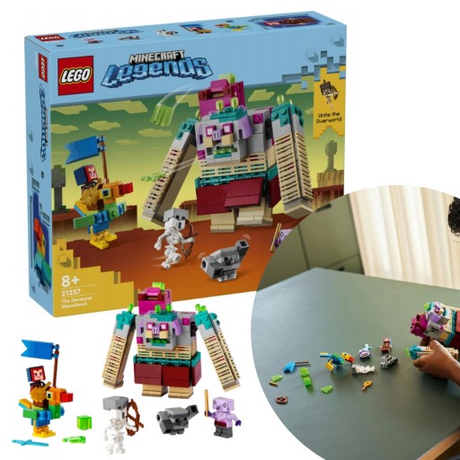 Prezentowany przed Państwem produkt to LEGO Minecraft decydujące starcie z dewastatorem. Ten zestaw LEGO, osadzony w nowym świecie Minecraft Legends, zawiera jednego z największych bossów gry, Dewastatora. Ta duża figurka do zbudowania ma długie, ruchome ramiona i ciało pokryte strupami, bliznami, ranami i grzybami. Po naciśnięciu przycisku Dewastator może wystrzelić „pociski” wymiocin z ust i śluz z plecaka. Zestaw zawiera figurkę leśnego bohatera z gry Minecraft z autentycznymi elementami z gry: flagą, peleryną, diamentowym mieczem i lutnią. Bohater dosiada ptaka wielkodzioba i dowodzi swoimi sojusznikami — szkieletem i brukowym golemem. Jest to świetny prezent dla każdego dziecka w wieku od ośmiu lat. Jeśli szukałeś wspaniałego prezentu dla fana LEGO jesteś w idealnym miejscu. Dodatkowym atutem, który jeszcze bardziej przekonuje do zakupu jest bardzo atrakcyjna cena. Nie czekaj dłużej i zamów już dziś!
