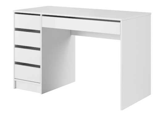 Biurko Arfa utrzymane w nowoczesnej stylistyce. Elegancji dodaje mu również śnieżno biała kolorystyka. Biurko wyposażone w pięć bezuchwytowych szuflad. Boczne szuflady są uniwersalne w montażu, co oznacza, iż mogą być ulokowane zarówno po prawej, jak i lewej stronie mebla.