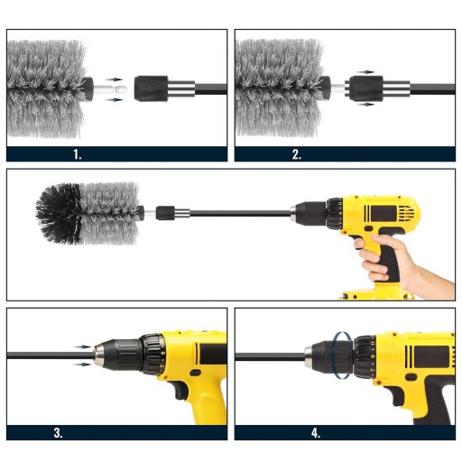✔ 【Zestaw szczotek 8 w 1】5 szt. szczotek do wiercenia (1,7" / 2,3" / 3,9" / 4,7" / 5,1"), szczotka kulowa 14,9"/3,7" (długość), pręt przedłużający 15 cm, ręcznik. Możesz wybrać odpowiednią szczotkę wiertniczą, aby usunąć plamy, rdzę, mech itd. Możesz użyć odpowiedniej szczotki do czyszczenia różnych przedmiotów.