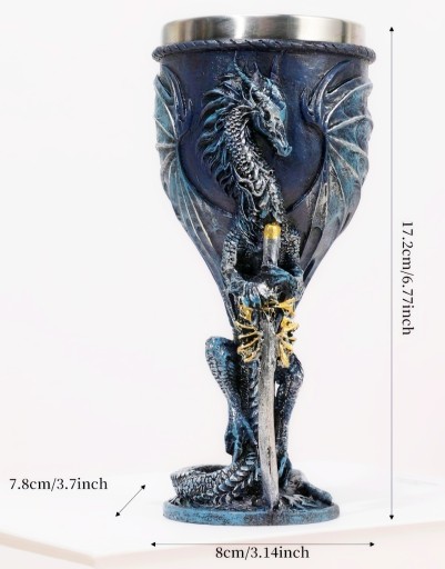 Кружка ДРАКОН, готический средневековый бокал для вина, 3D сталь, синий
